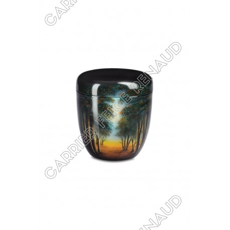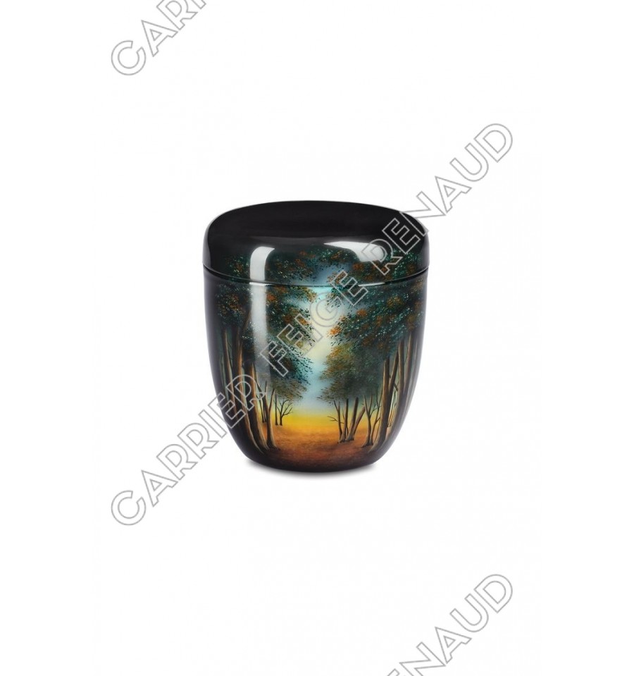 L'urne funéraire Clair-Obscur est une urne funéraire en aluminium de couleur et motif Allée forêt.